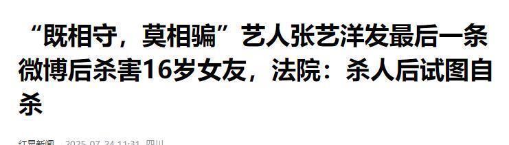 红星新闻2025-07-24《“既相守,莫相骗”艺东说念主张艺洋发临了一条微博后杀害16岁女友,法院:杀东说念主后试图自裁》