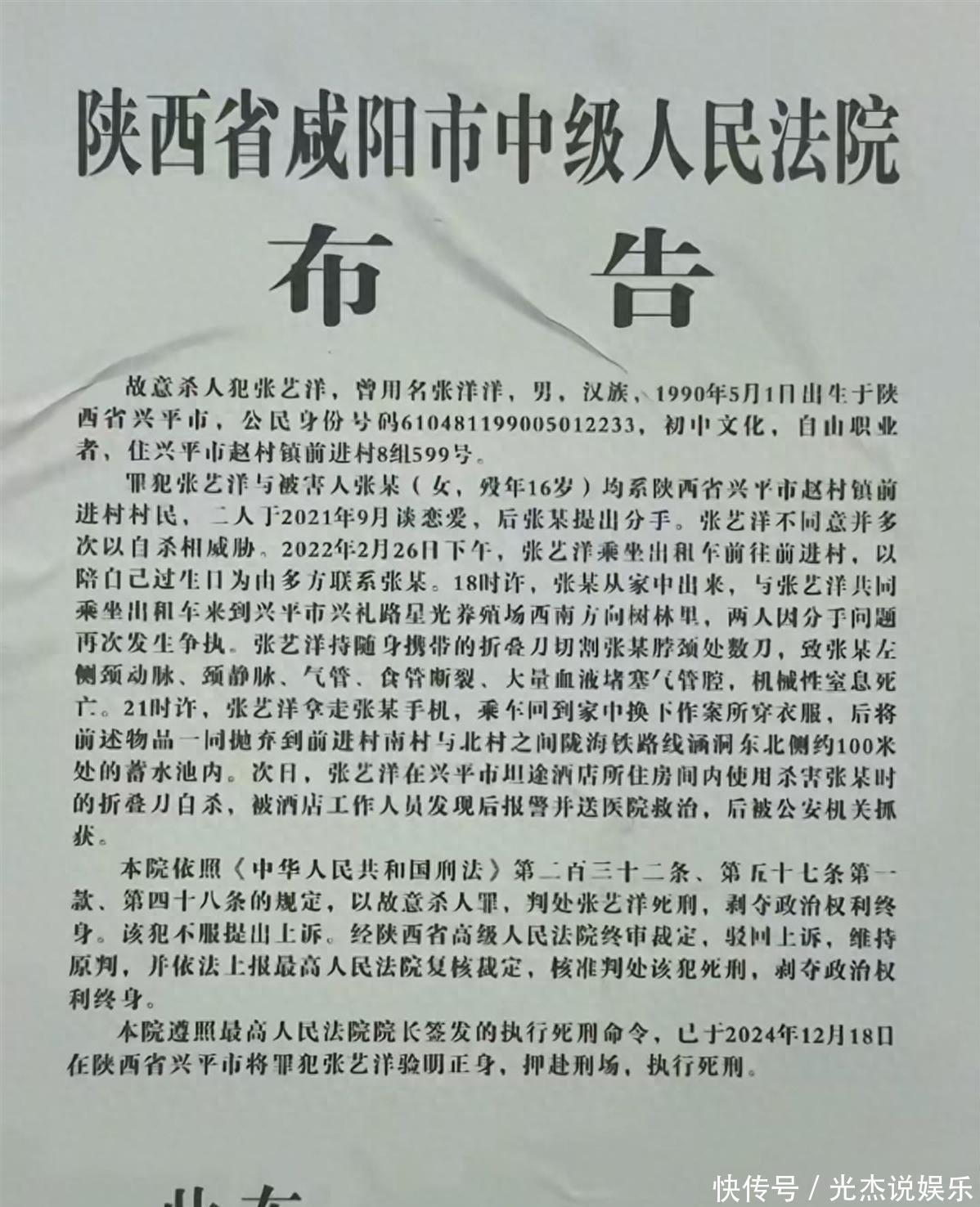 在经过关联部门的造访后,照章判决张艺洋死刑,并于2024年12月18日本质枪毙。