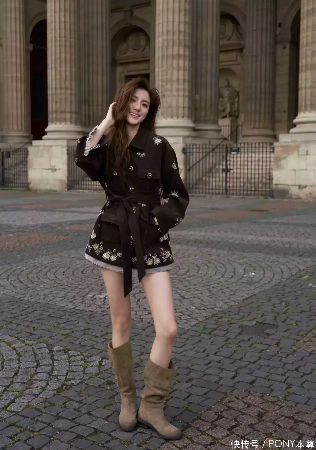 通常是好意思拉德棕色印花夹克,搭配同色系短裤,脚踩棕色短靴,松懈感满满!