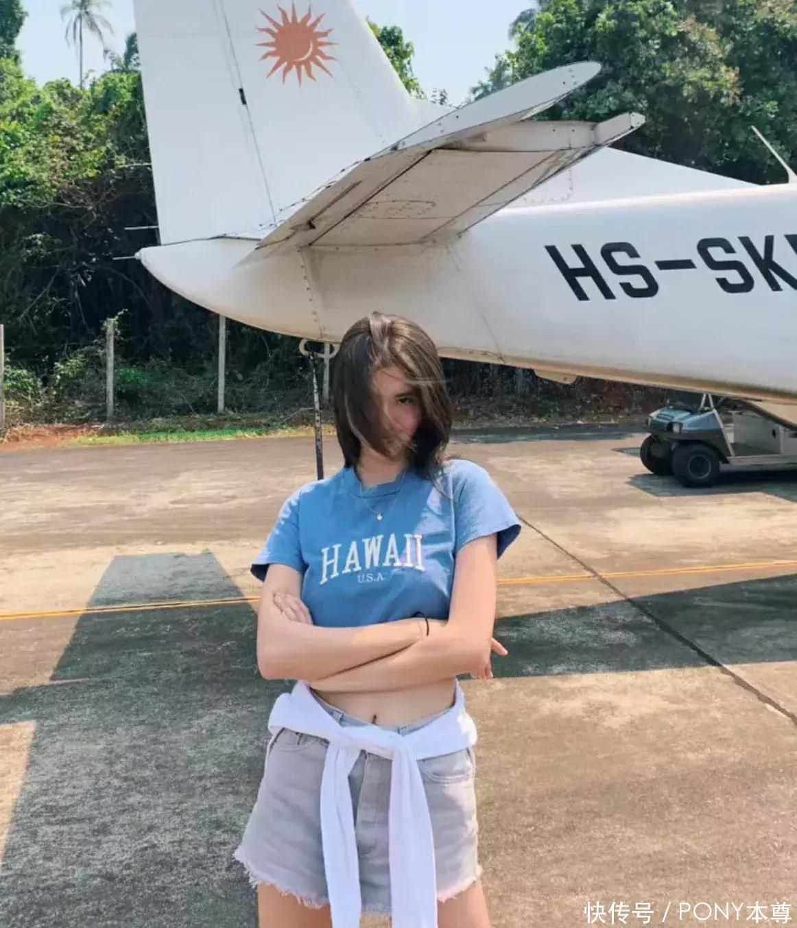 通俗的蓝色短T恤,搭配毛边牛仔短裤,白色诚挚衫行动腰间的秘籍!是不羁的先锋感!