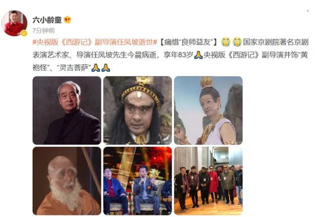虽说离世时刘秉章照旧98岁了,家里东谈主大概早就作念好了准备,但当这一活泼的驾临时,和他相伴几十年的配头依旧无法罗致,如今内心仍悲痛不已。       83岁任凤坡       行为《西纪行》副导演,任凤坡的离开好似带走了许多东谈主的童年回忆,为他愁然。 犹记起在《西纪行》中,他还出演了黄袍怪和灵吉菩萨,两个扫数不一样的变装,却被他解说的大书特书,印象深切       。《西纪行》电视剧版能有今天的见效,离不开主角的扮演,天然也离不开副角的死力。       此外,他照旧       国度级京剧院著名京剧扮演艺术家       ,在艺术节尽头有声望,不错说是“眼高手低”。
